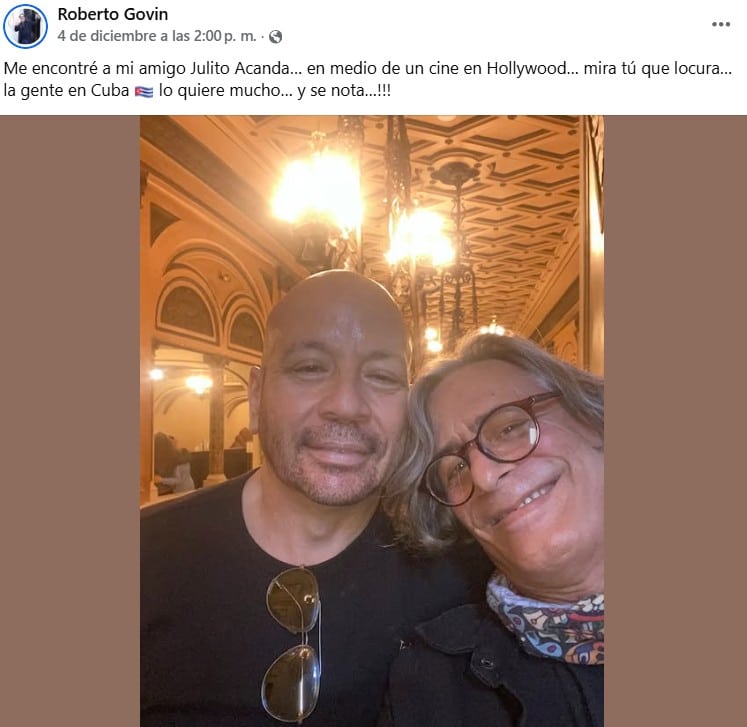 Por eso, no es de extrañar que su reaparición haya causado un gran revuelo, aunque la noticia no haya llegado por los canales habituales, sino a través de una foto publicada en redes sociales por el actor cubano Roberto Govin, quien reside en Los Ángeles. Allí, en pleno Hollywood, ambos compartieron un encuentro en un cine que rápidamente se volvió viral entre los nostálgicos. La imagen, sencilla y sin aspavientos, bastó para despertar una oleada de comentarios y preguntas sobre el comunicador.